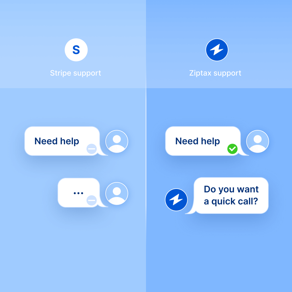 Ziptax delivers the same accuracy as Stripe Tax at a fraction of the cost while offering better support options and versatile API options. On average, Ziptax costs 7 times less than alternative solutions.